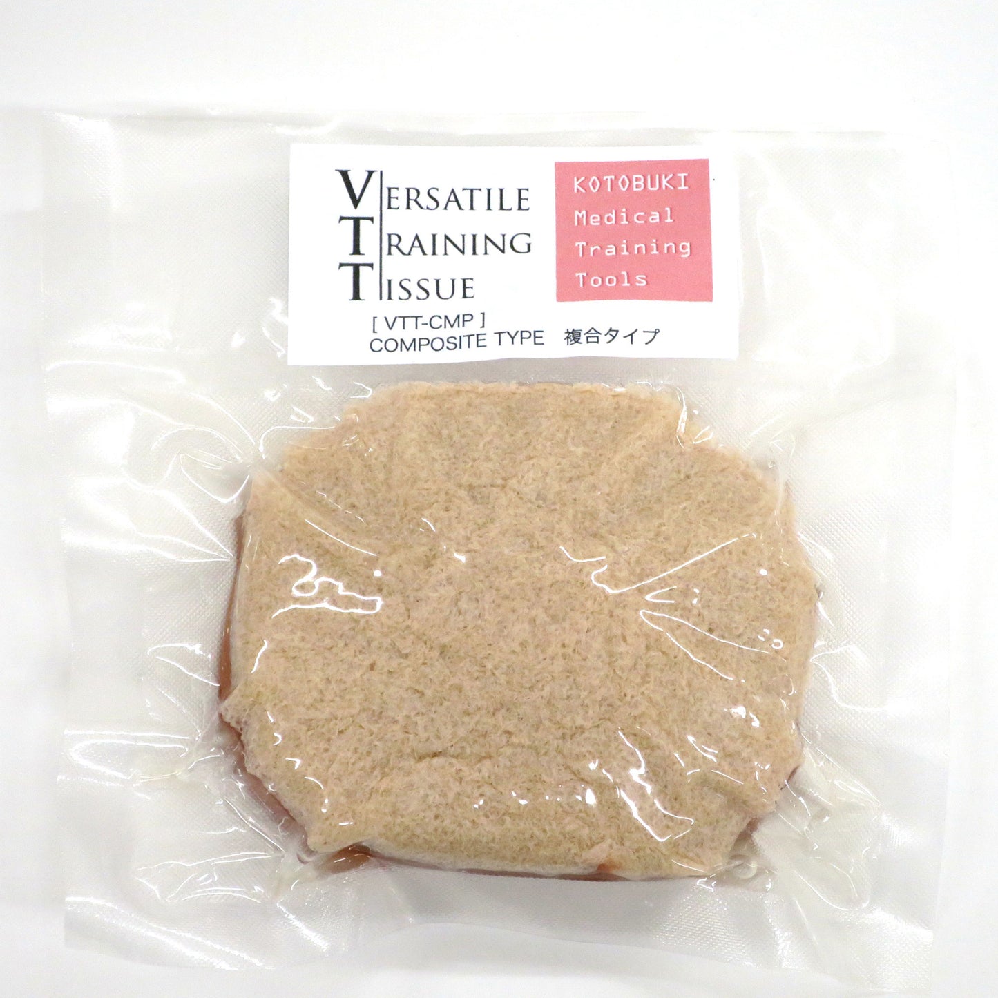 The VTT Composite Type is a one-use surgical task trainer designed for more complex tumor removal practice sessions. This round model's base is made of medium-density VTT covered in a thin layer of dense VTT. One synthetic, spherical tumor is embedded in the center.